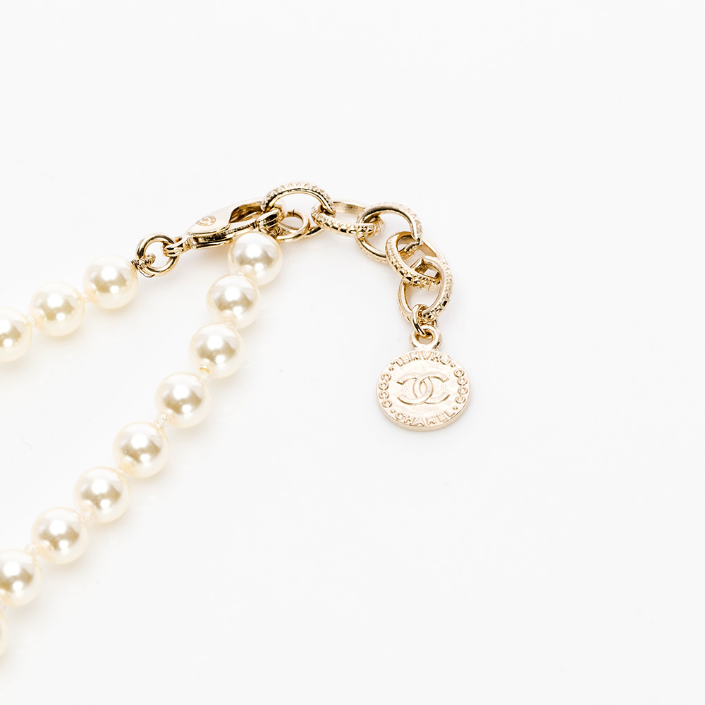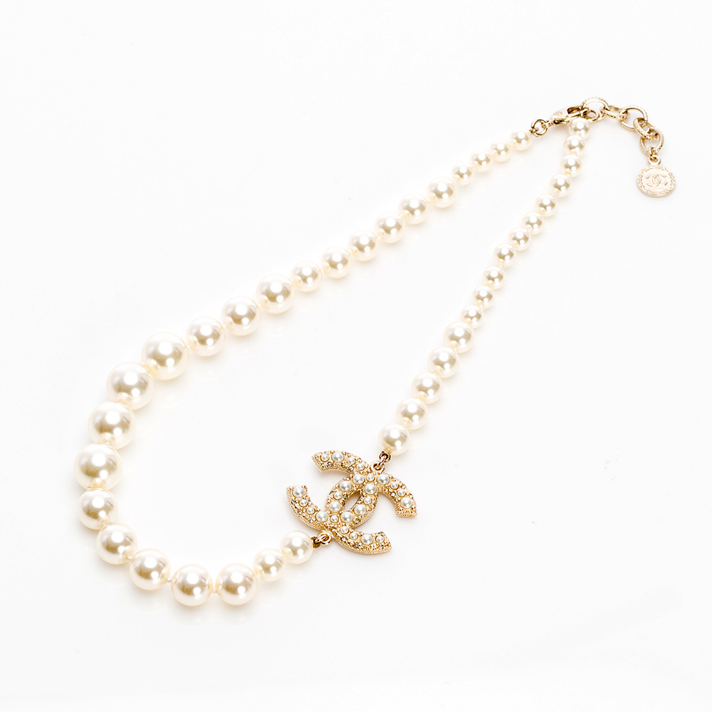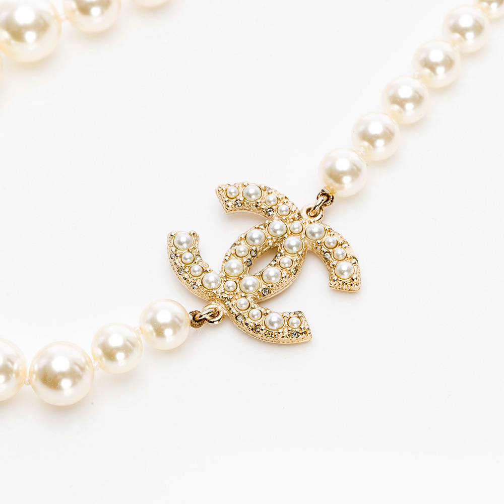 一條帶有令人印象深刻的Coco Mark圖案的珍珠項鍊。