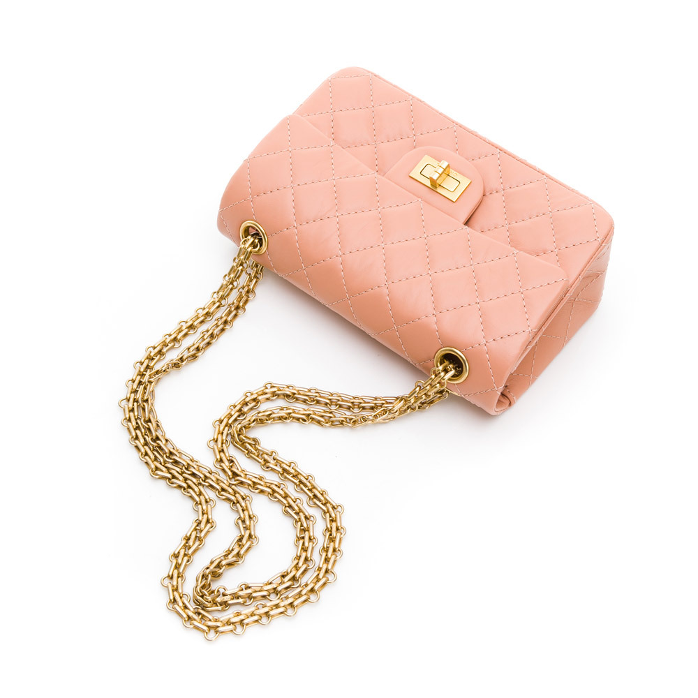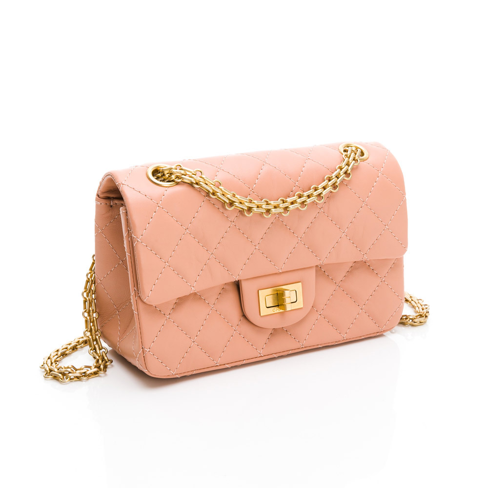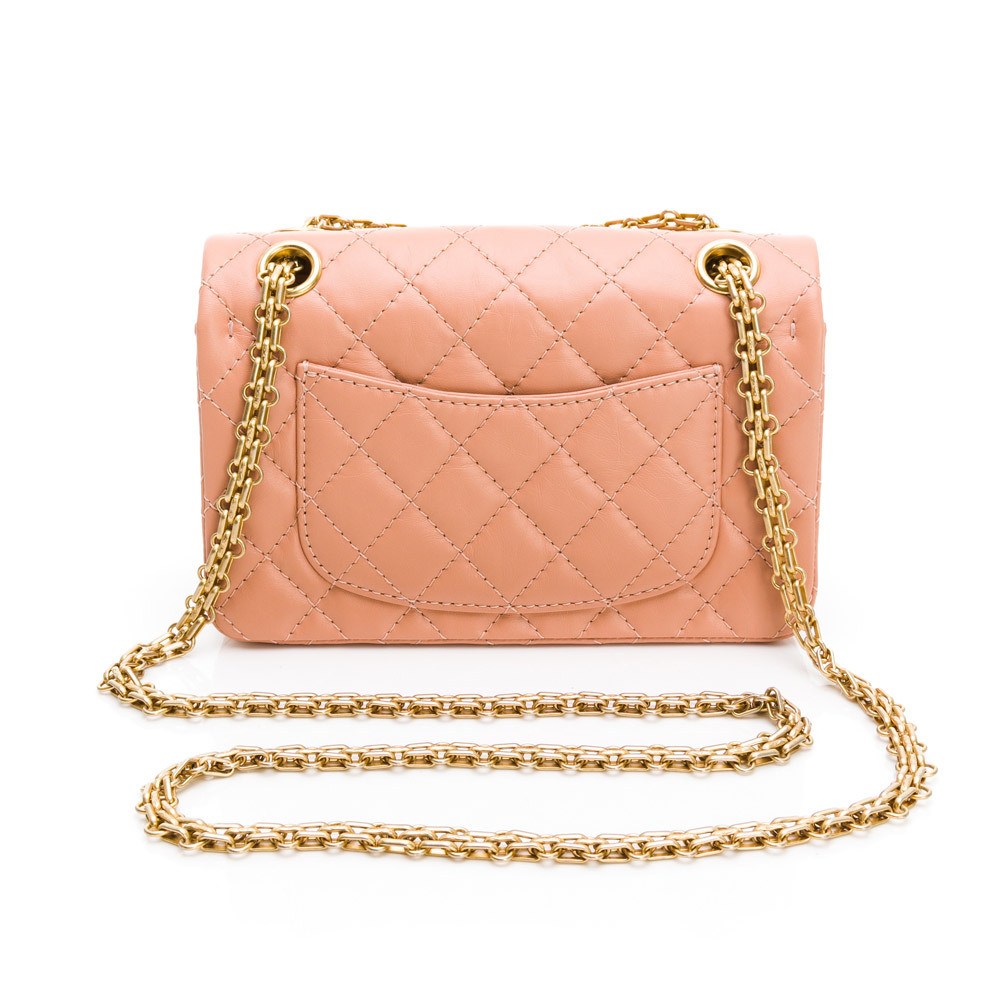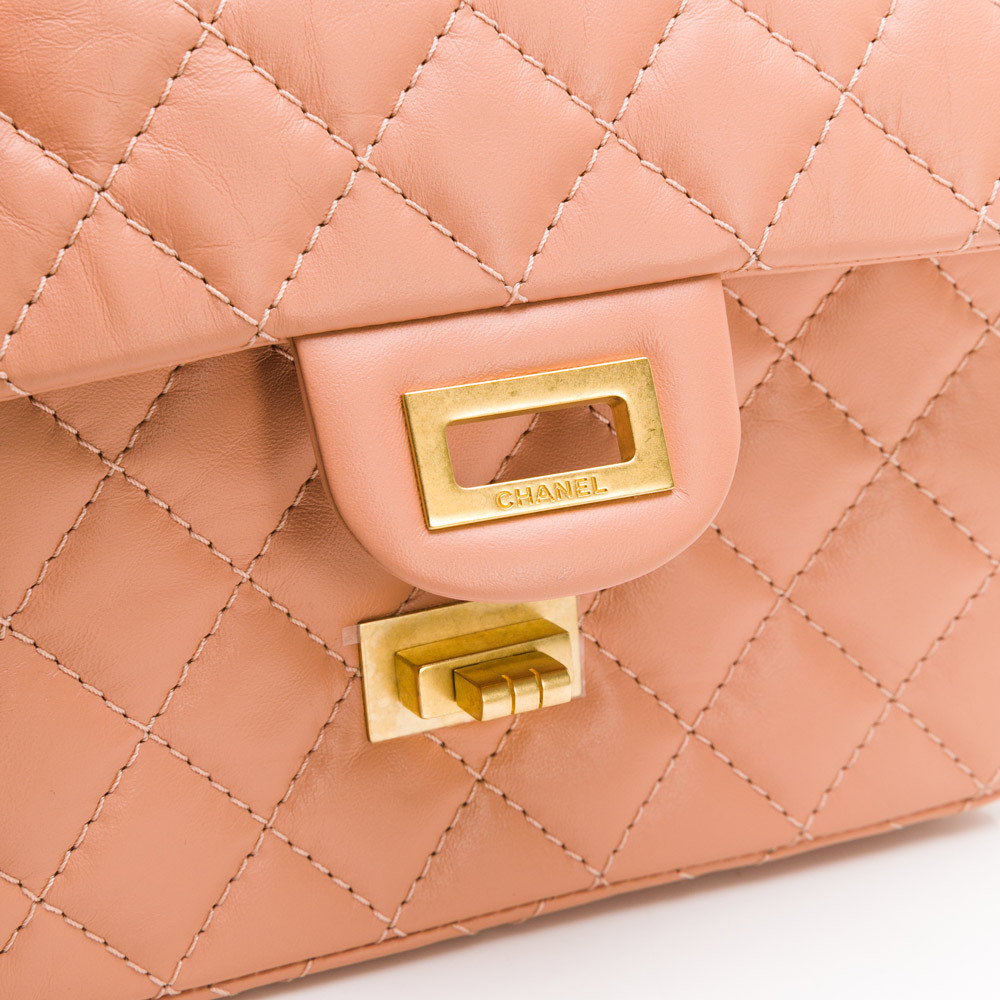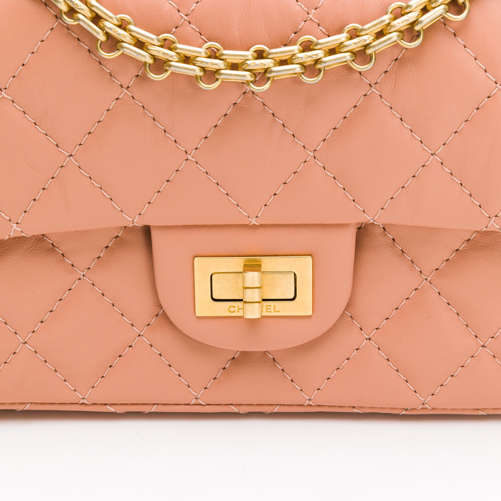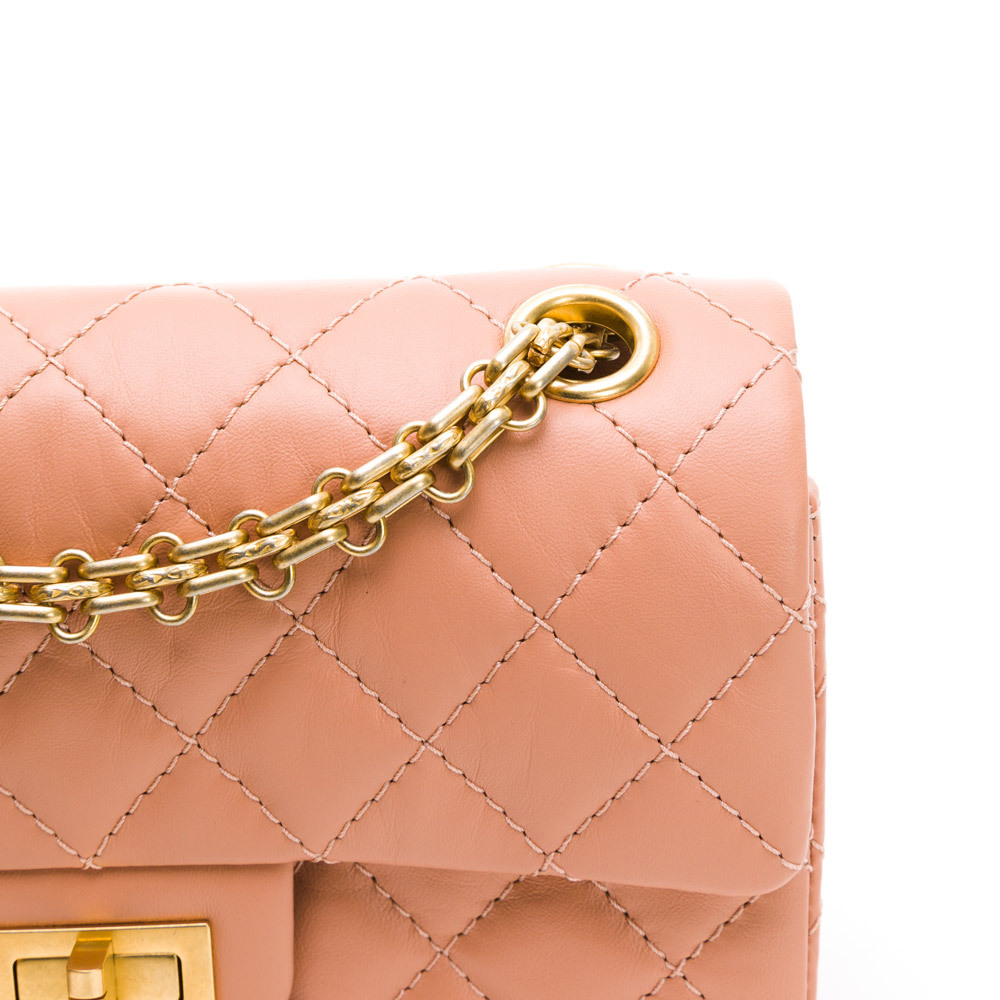 CHANEL 2.55系列雙C LOGO菱格紋翻蓋轉釦肩背包(暗粉/金)