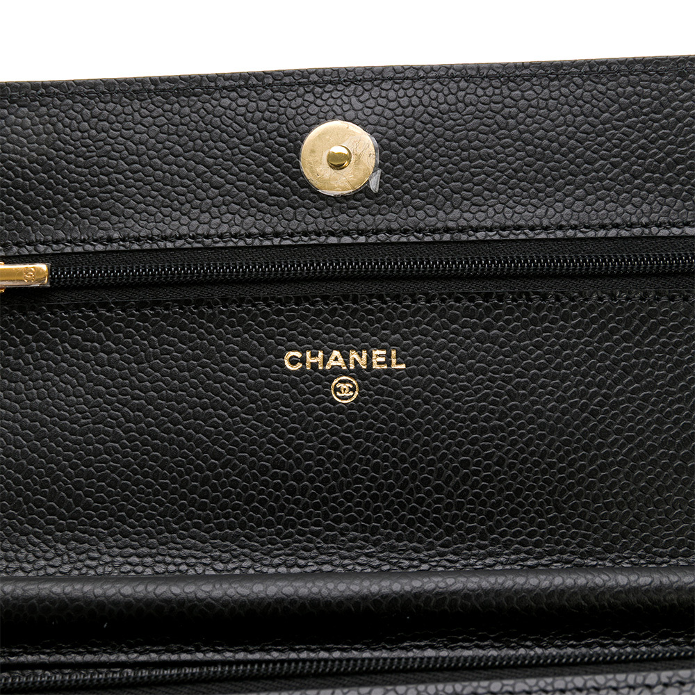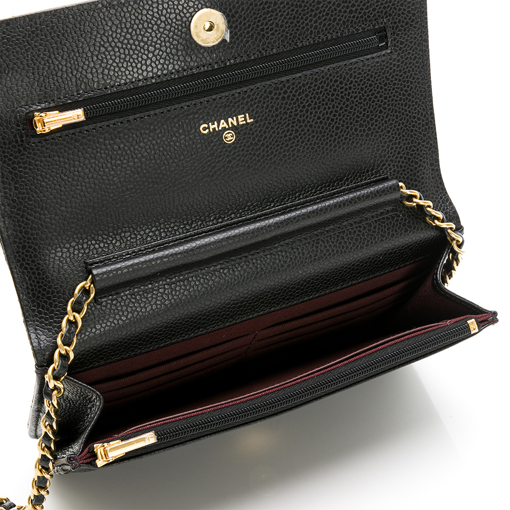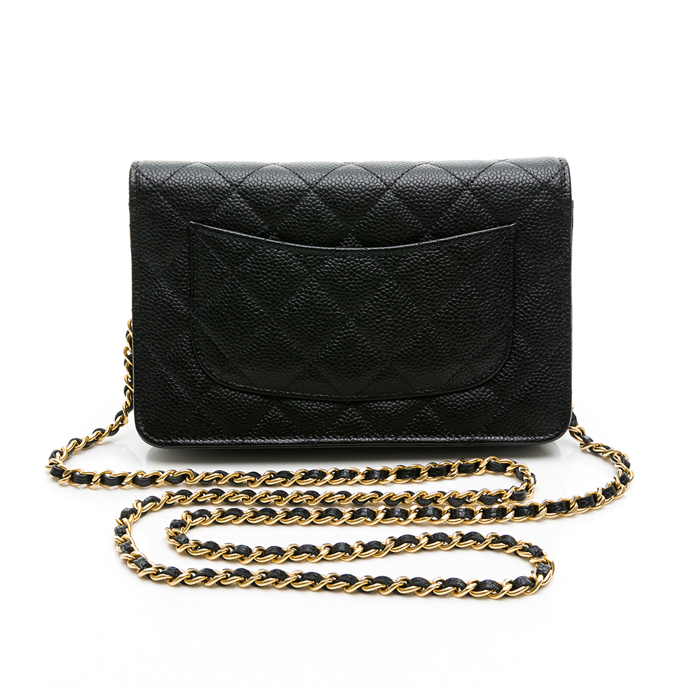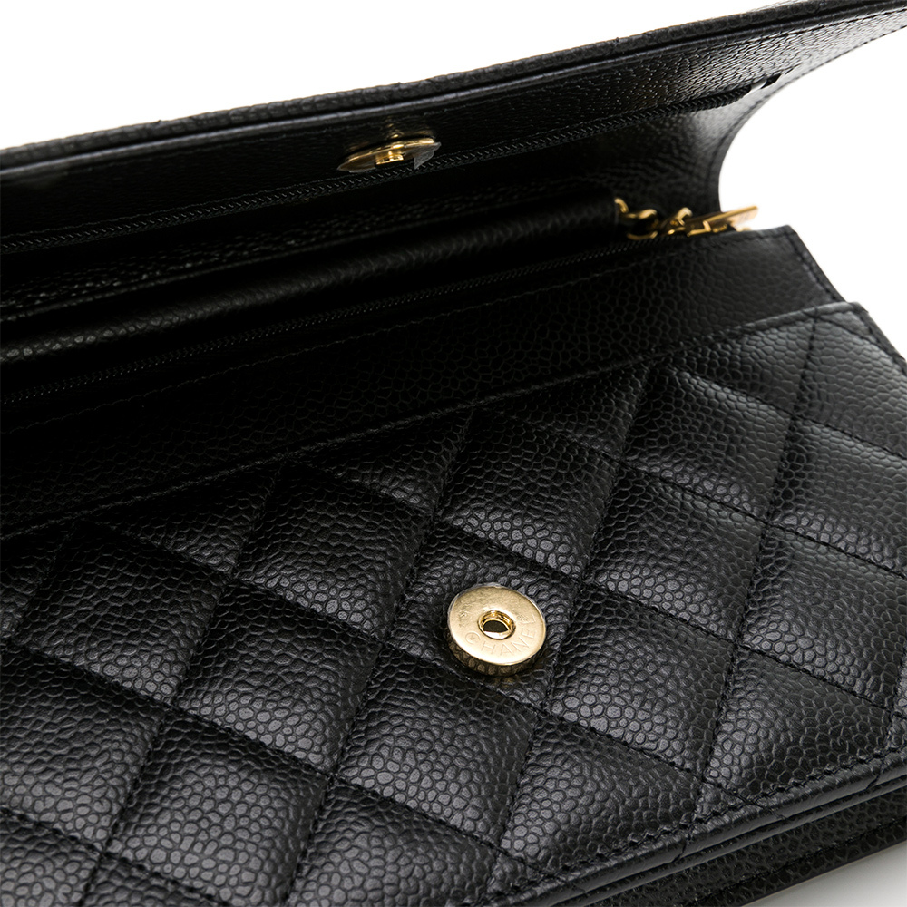 CHANEL 經典菱格紋牛皮WOC手拿/斜背包(黑金)
