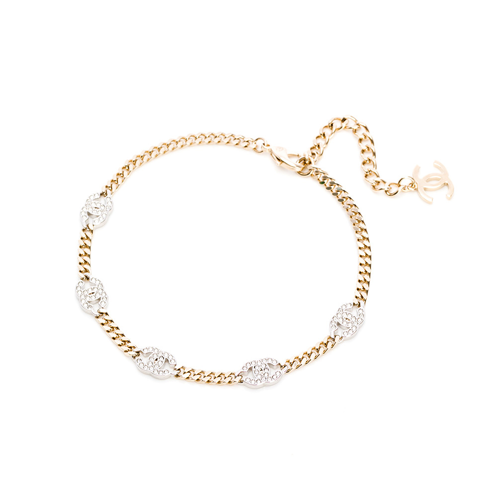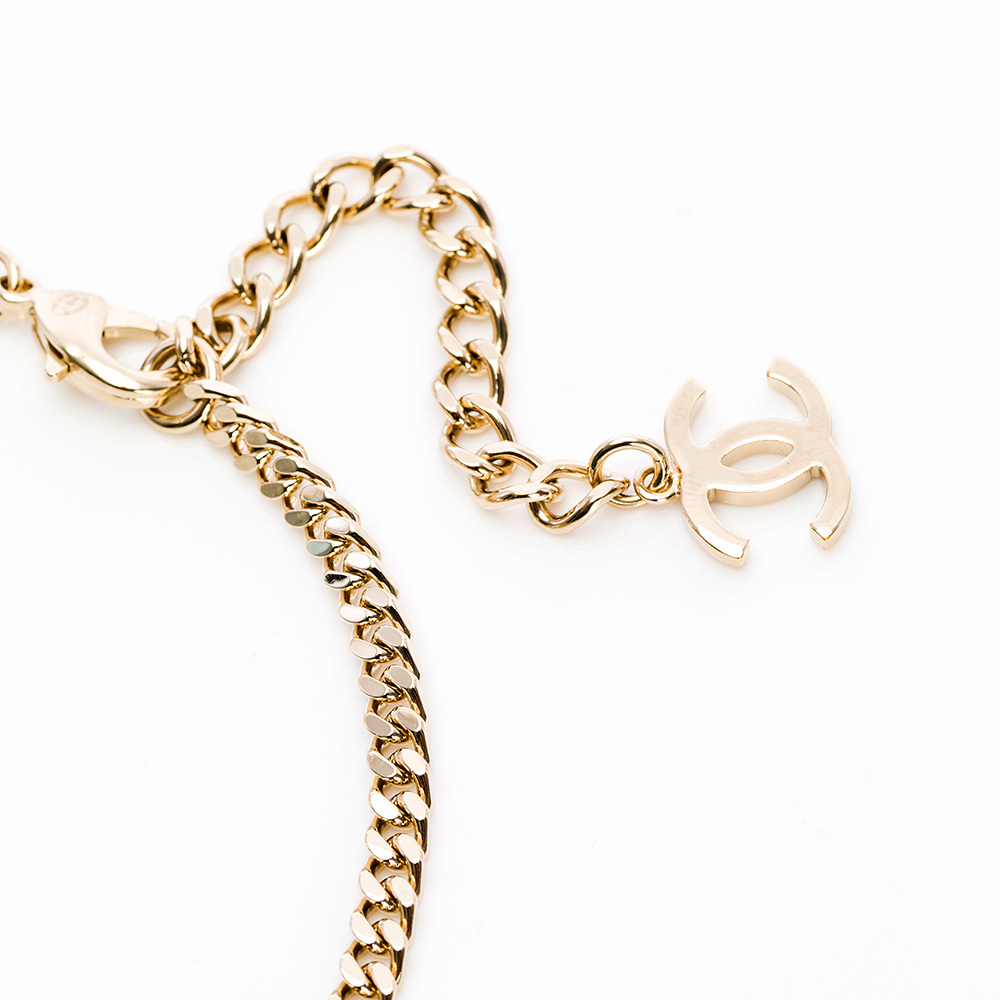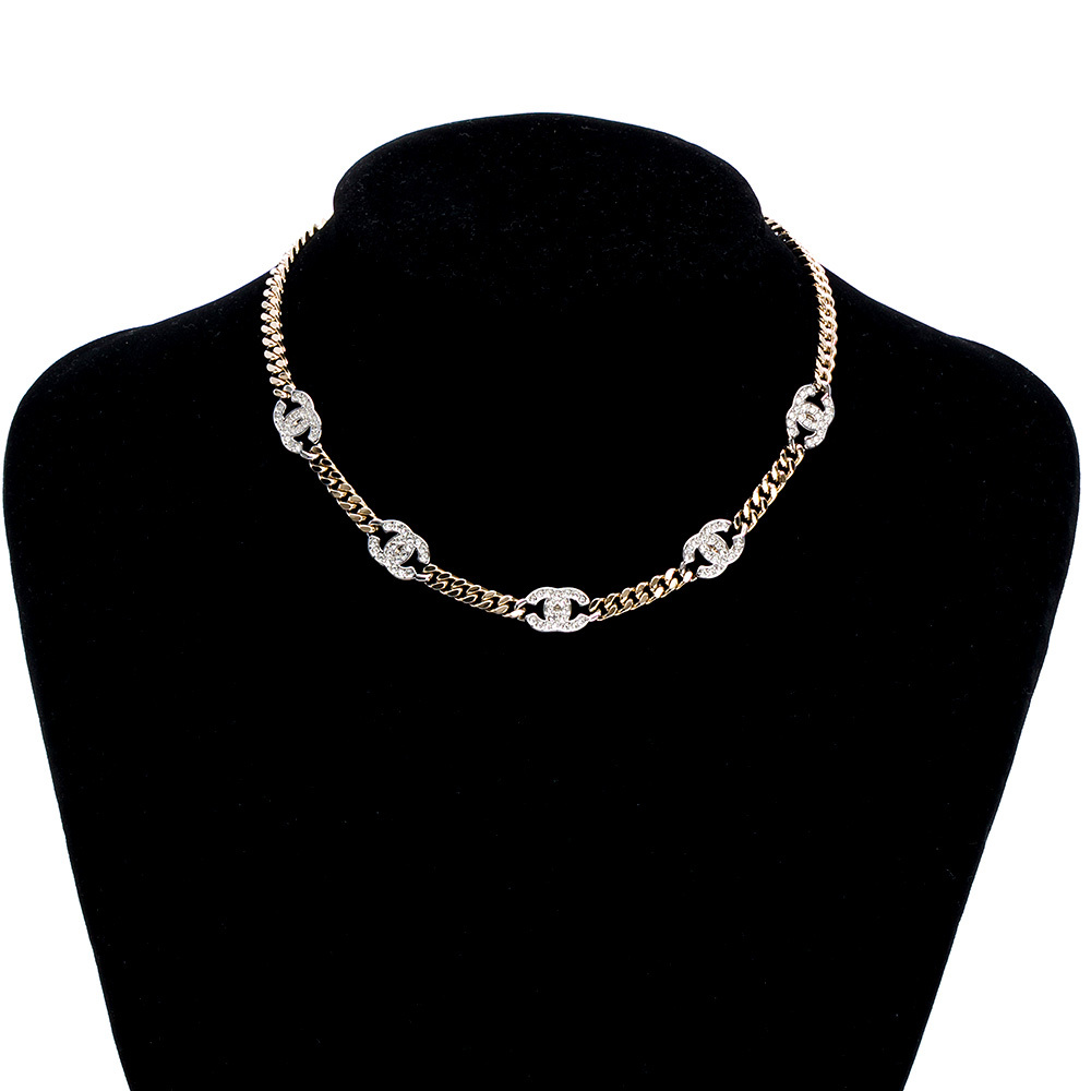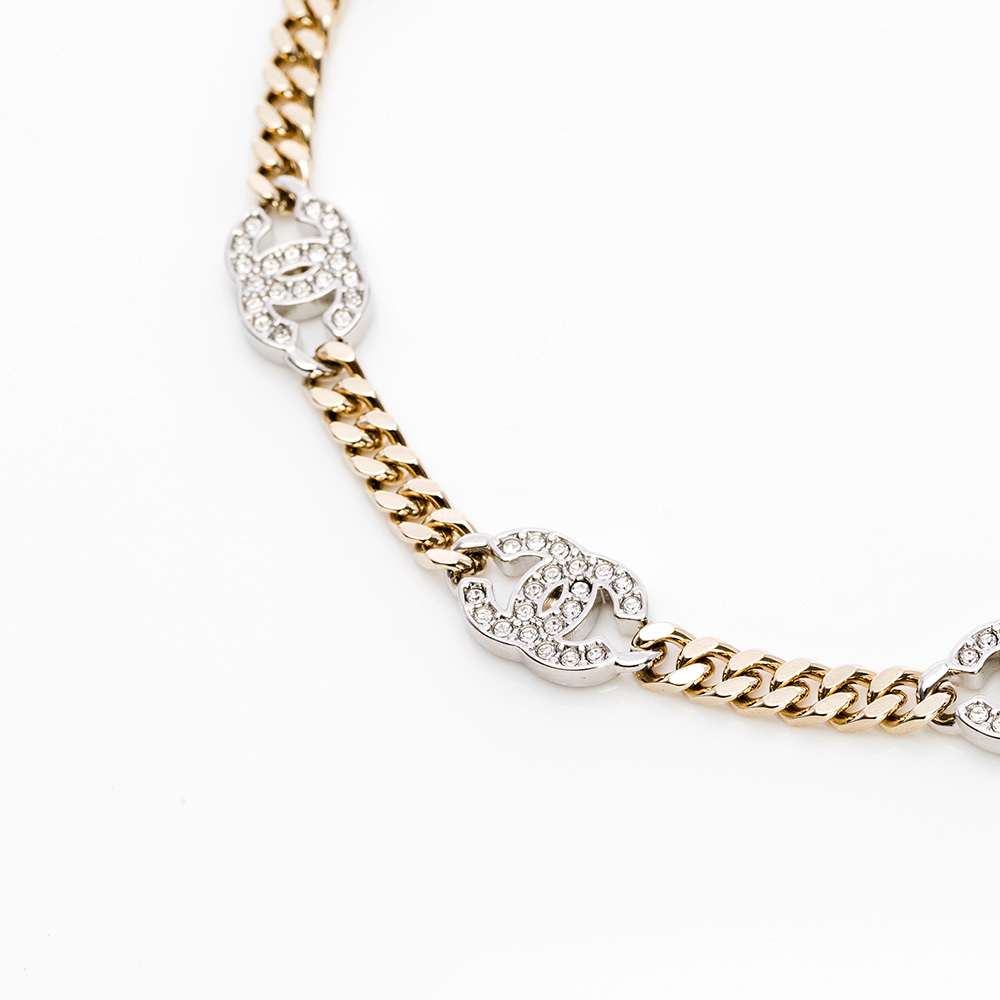 項鍊的部分是經典淡金、雙C五花部分是銀色滿鑽