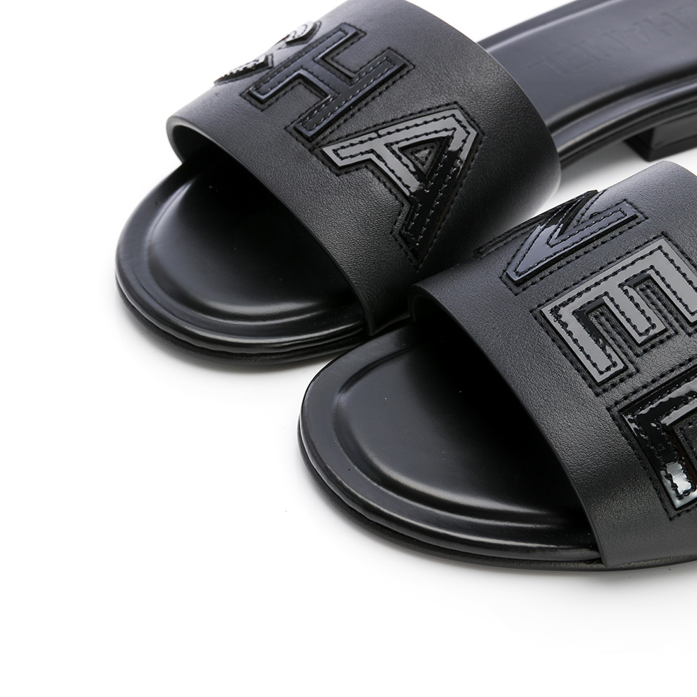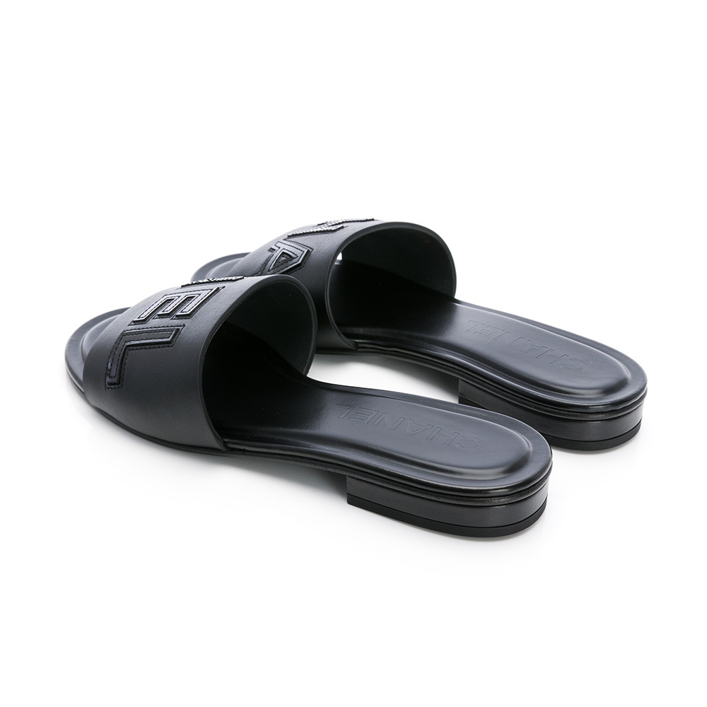 採用黑色皮革製成,並帶有“CHANEL”閃亮細節