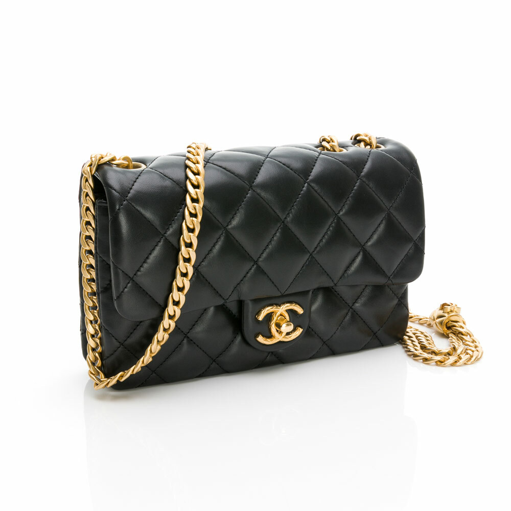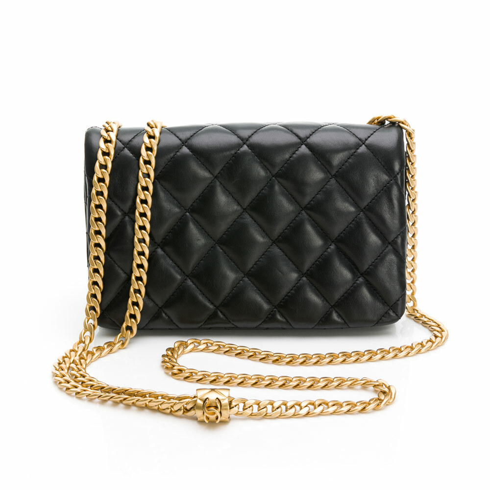 CHANEL Small Flap經典菱格紋小羊皮金珠可調節鏈帶肩背/斜背包(黑色)