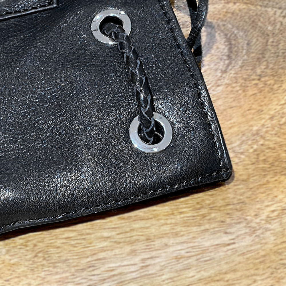 【微NG】DESIGUAL 拼接皮革編織流蘇束口後背包(黑)