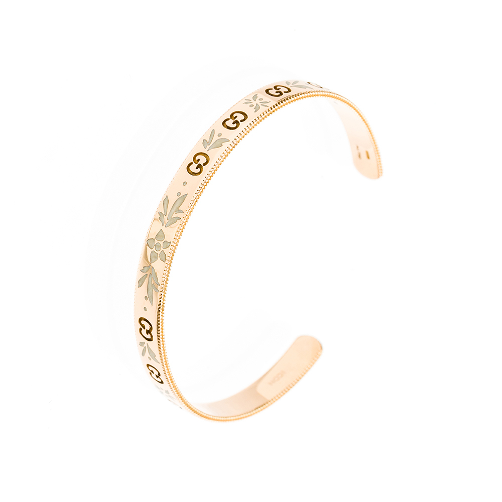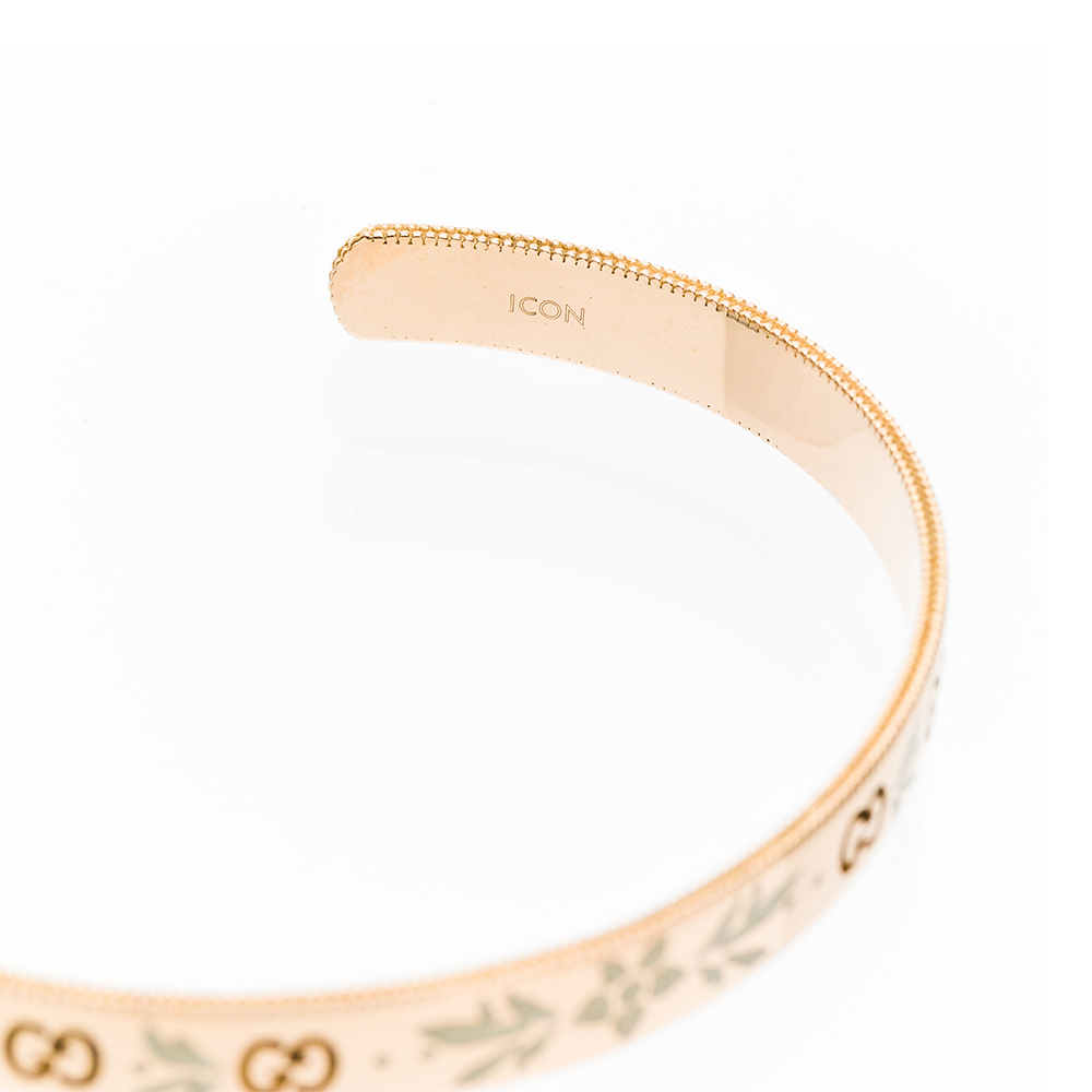 GUCCI Icon Blossom 18K玫瑰金&白色琺瑯花朵圖紋手鐲