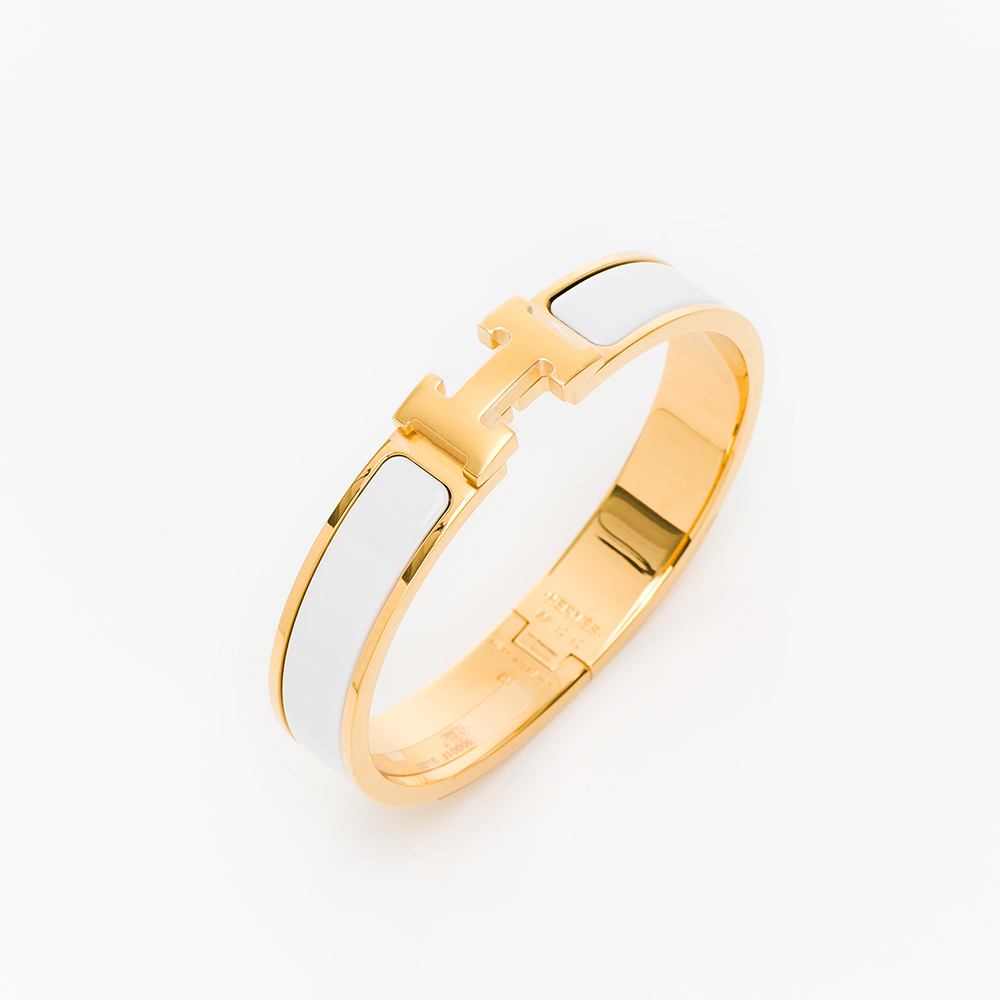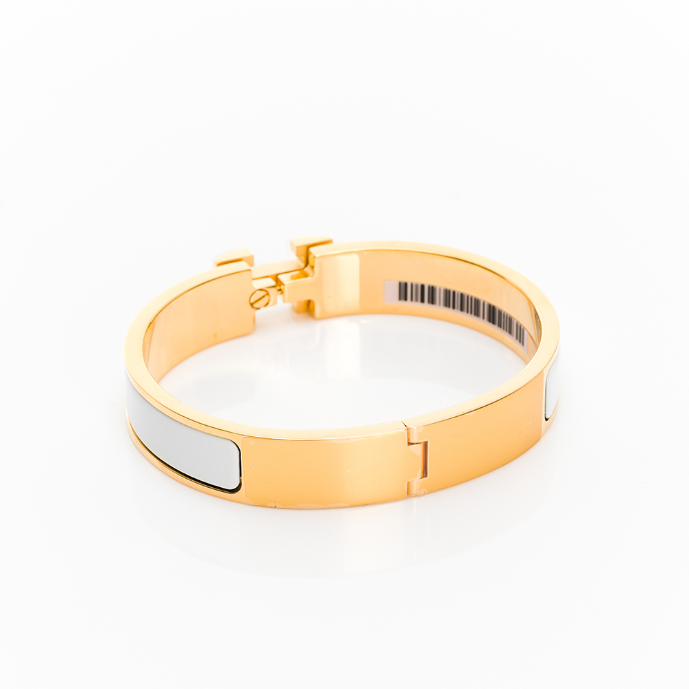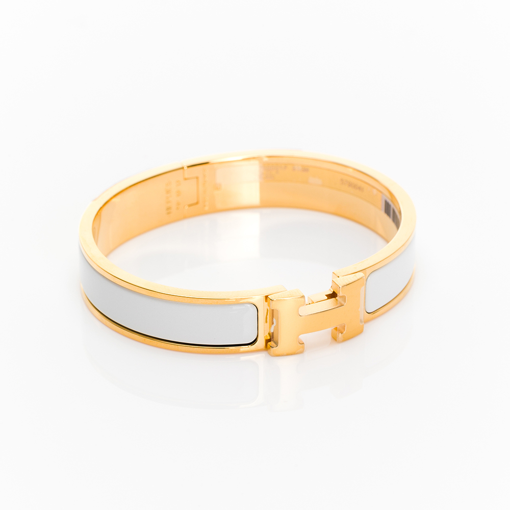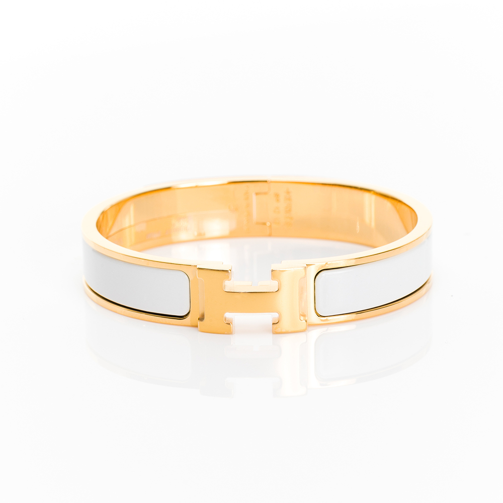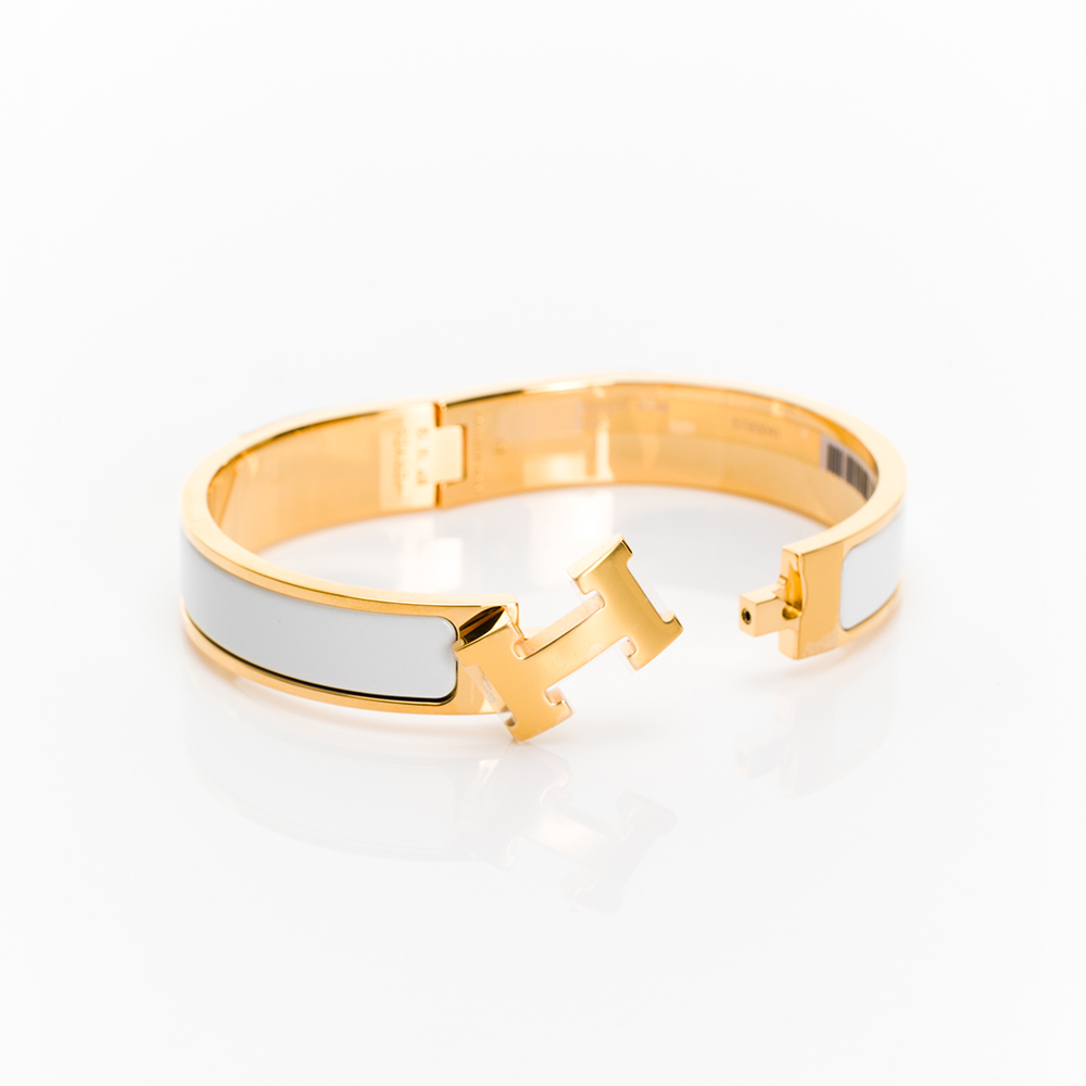 HERMES Clic H logo手環(白/金)(GM)
