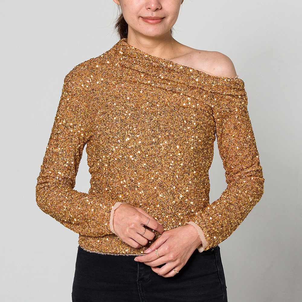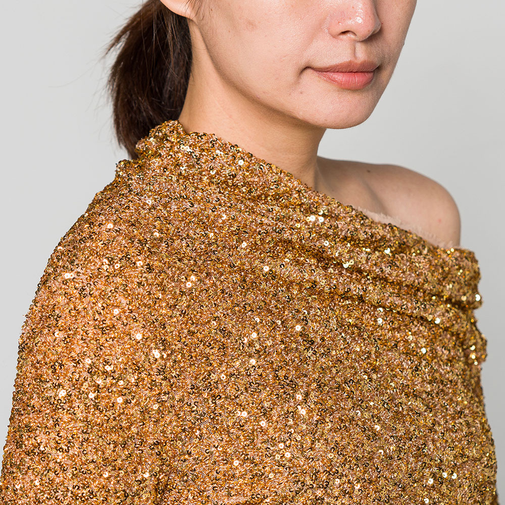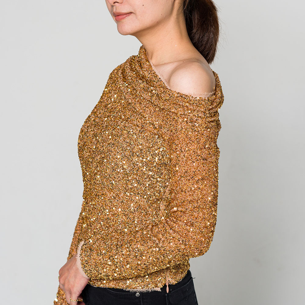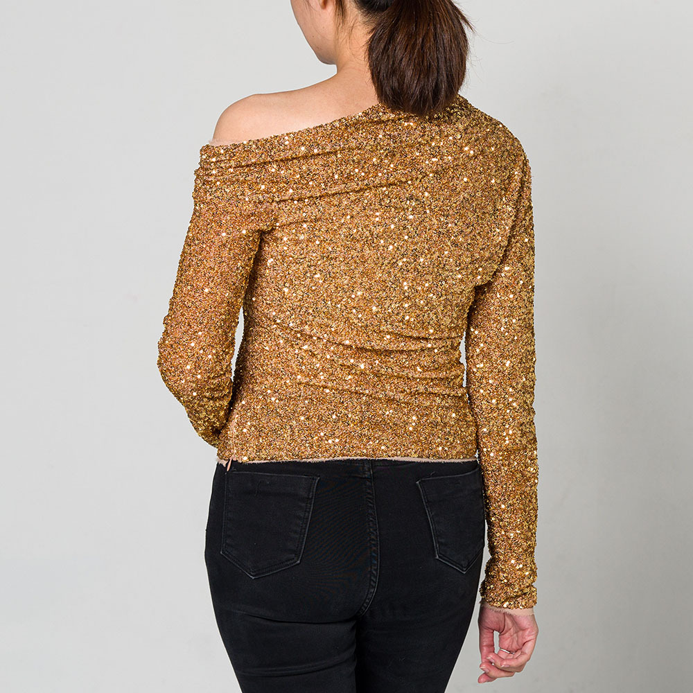 Self-portrait 金色亮片露單肩不對稱上衣(UK6)