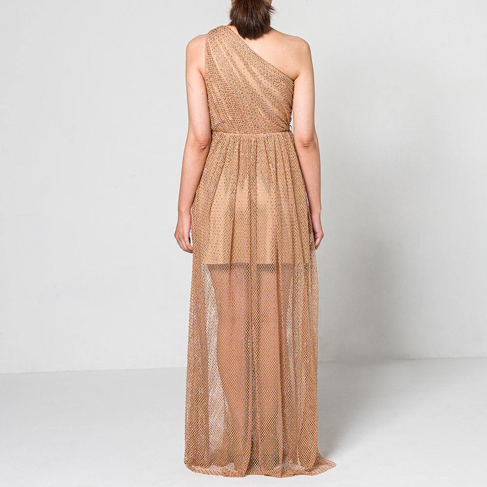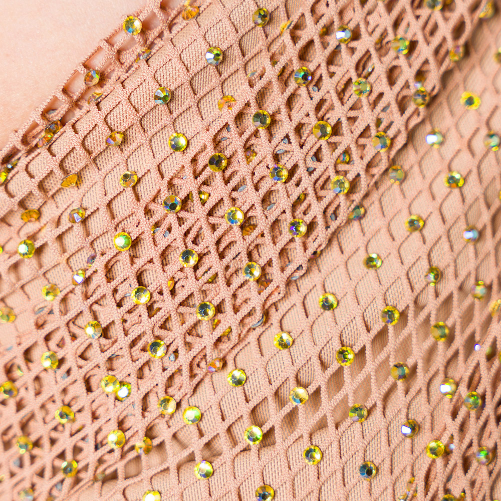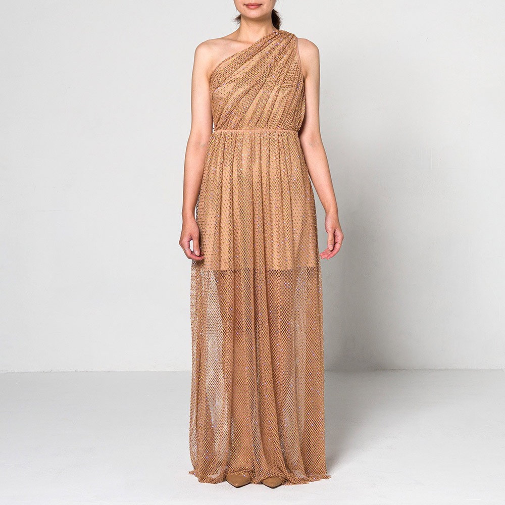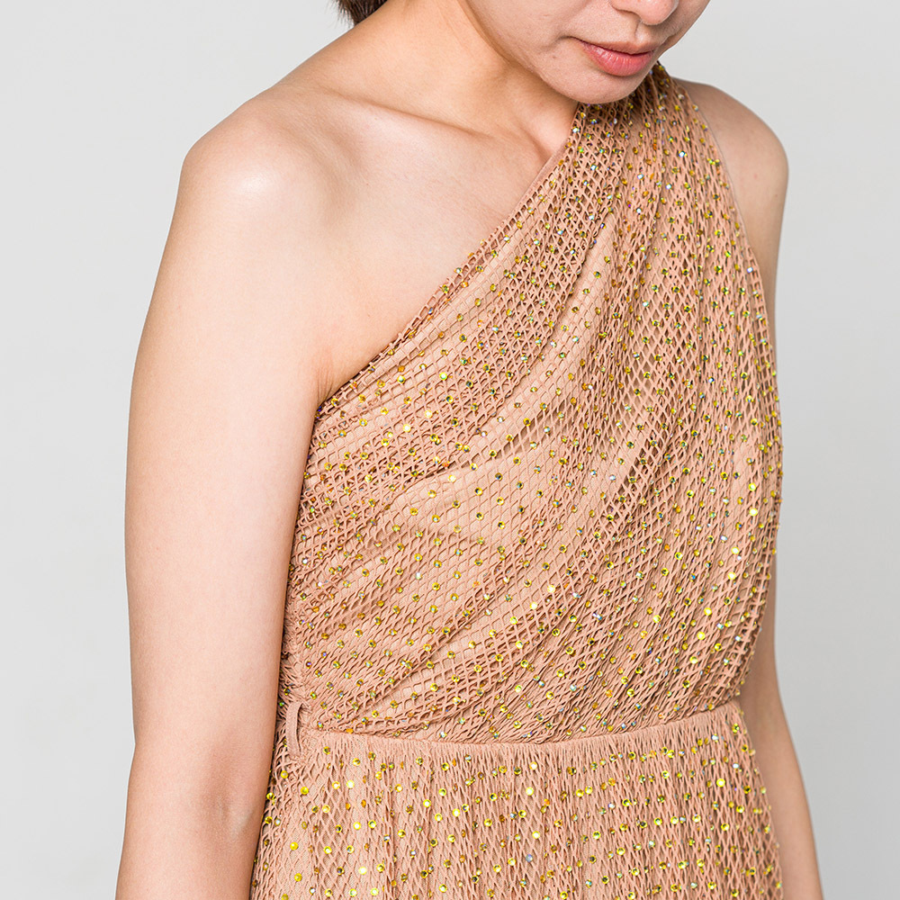 水鑽綴飾漁網一字肩連身裙