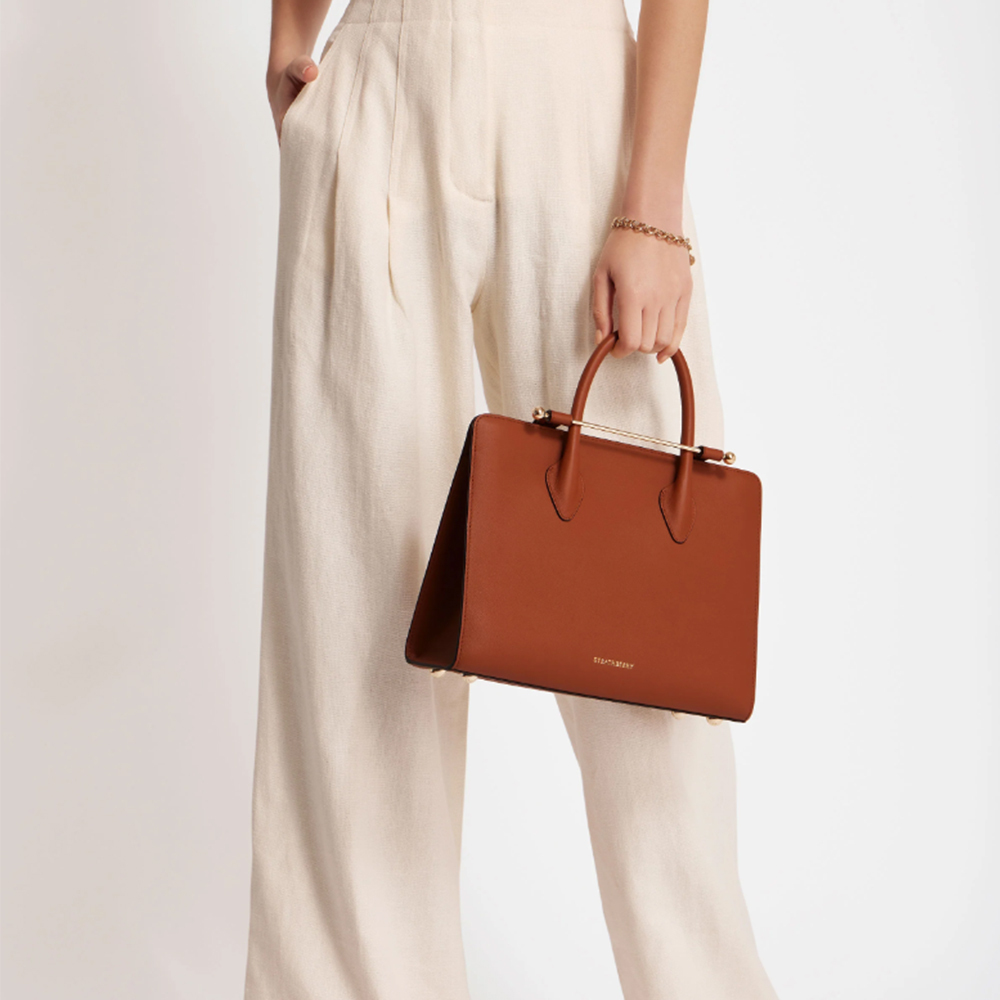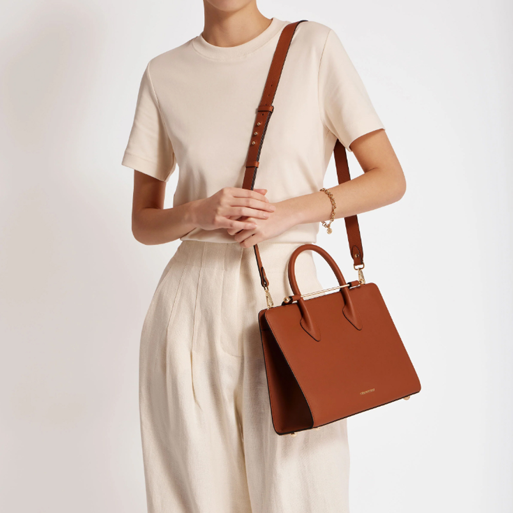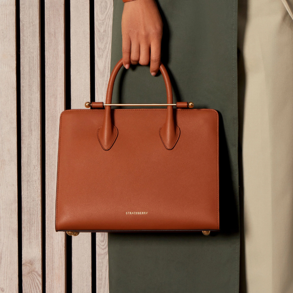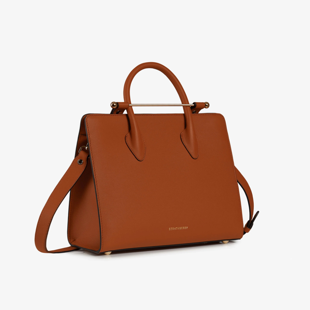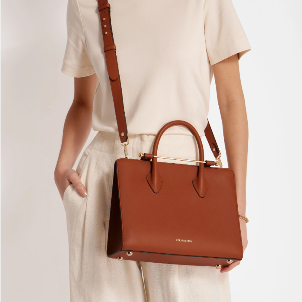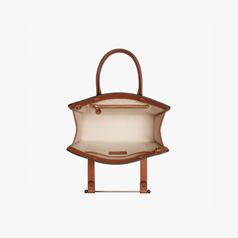 Midi Tote 以簡約低調的輪廓展示出品牌的優雅和奢華,成為歷久常新的經典款式,標誌性的金屬橫桿優雅地疊放在頂部手柄處,以確保其牢固閉合,可作手提或背包使用