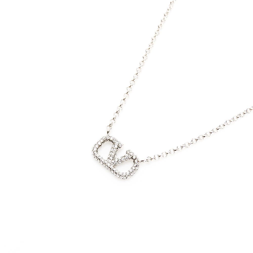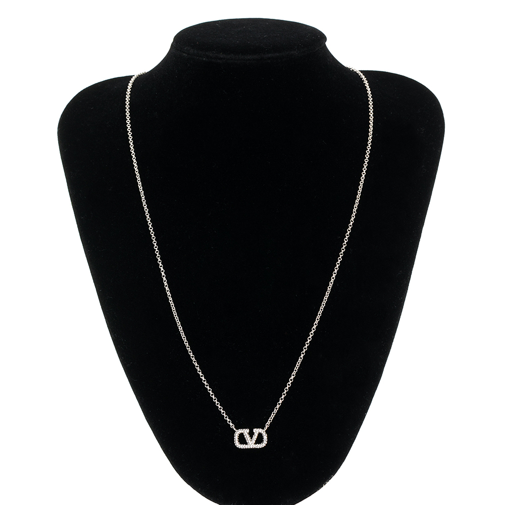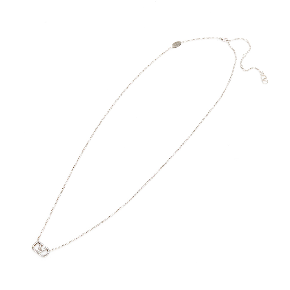 VALENTINO Garavani 經典滿鑽V logo銀色項鍊